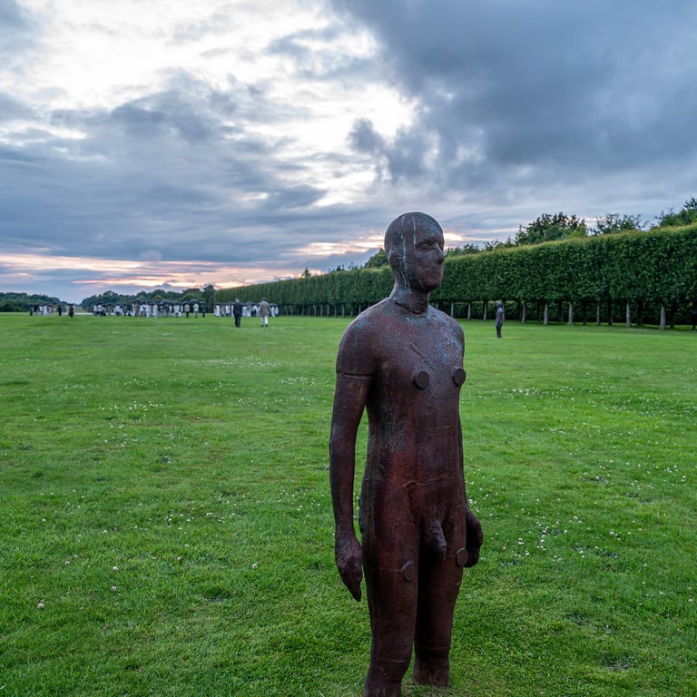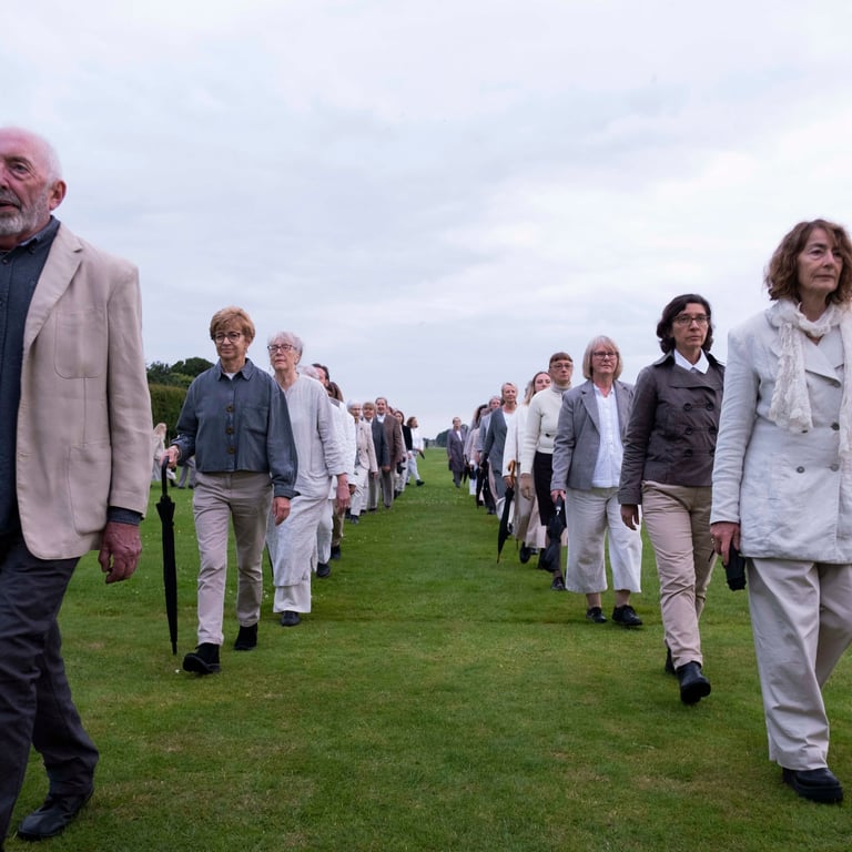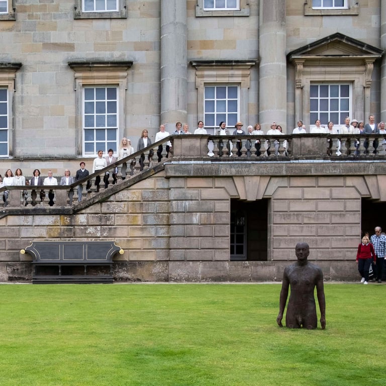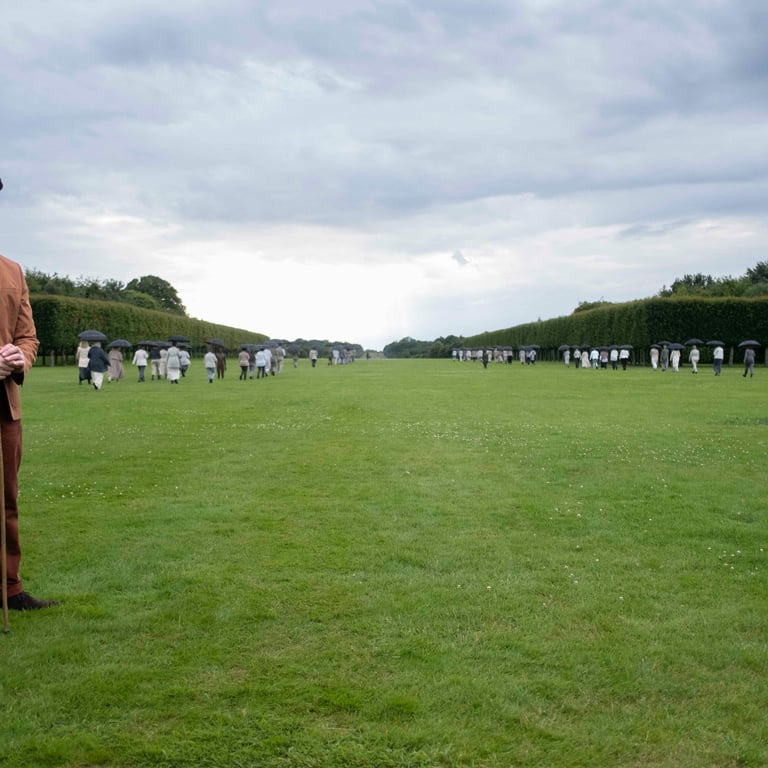 The Lie of the Land took place at Houghton Hall, north Norfolk in July 2024 alongside Antony Gormley's Time Horizon, an installation of 100 life-size sculptures of the artist's body distributed across the Houghton Hall parkland.