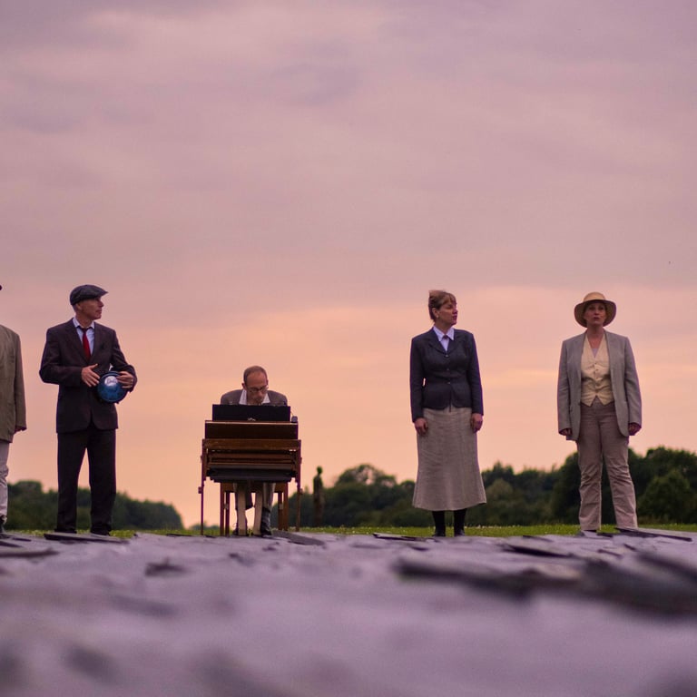 Time Horizon consisted of 100 sculptures, each placed at the same height above sea level, resulting in some being partially buried in the ground and others on high plinths. Daisy Hillyard's essay written for the Time Horizon book was key to the project, becoming the libretto for the piece.